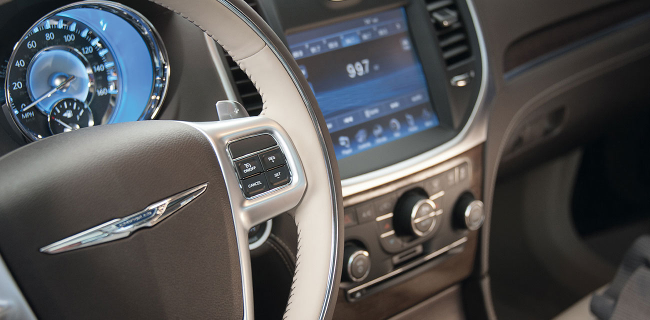 The new 300’s interior, additionally, is a significant improvement from the previous car, abandoning a stark and plasticky interior for one with gracefully curved panels, elegant glacier blue lighting, and trim pieces made of real metal. Completing the package is UConnect, a refreshingly logical and straightforward touch screen infotainment system that complements natural buttons and knobs rather than replacing them.