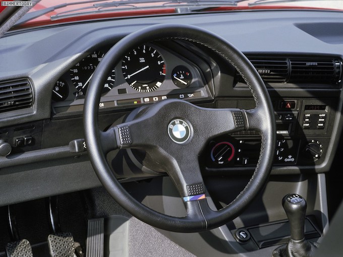 Gauges glow in a shade of orange-tinted red that BMW enthusiasts seem to prefer, clearly marked and perfectly laid out for quick glances. The center stack is driver-oriented, tilted to the left with easy access to climate and audio controls. The onboard computer offers fuel and trip information as well as a security code you can set to disable the starter. Clever stuff for the 80s.